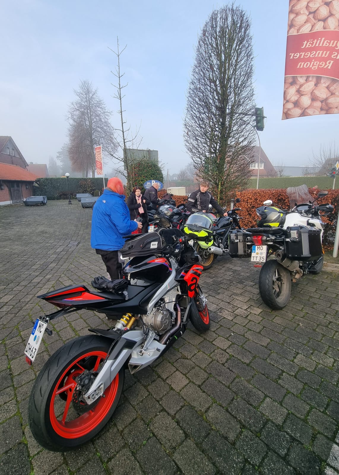 Schülertour Klasse A2, 08.11.25 Nach zwei Wochen wetter- und feiertagsbedingter Tourpause folgte heute nochmal eine A2-Tour ins westliche und nördliche Münsterland. Und diese Tour war ein Paradebeispiel für das typische Biker-Verhalten. Direkt zu Beginn kam Matthias mit seiner neuen Maschine,